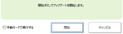 「サーバーに新しいデータが見つかりました。・・・・」のメッセージが表示された場合は、「OK」ボタンを押して「自動アップデート」画面で「開始」ボタンを押して自動アップデートを行ってください。 |