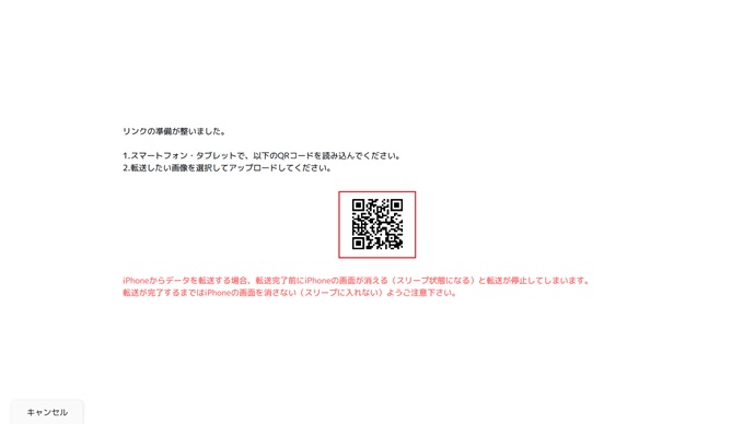 Kioskに表示されるQRコードを読むだけでスマートフォンの写真や動画を簡単に転送できます。