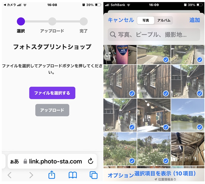 スマートフォンの画面から『ファイルを選択する』をタップし、サムネイル一覧から送信したいファイルを選択します。選択が完了しましたら、画面右上の『追加』ボタンをタップしてください。