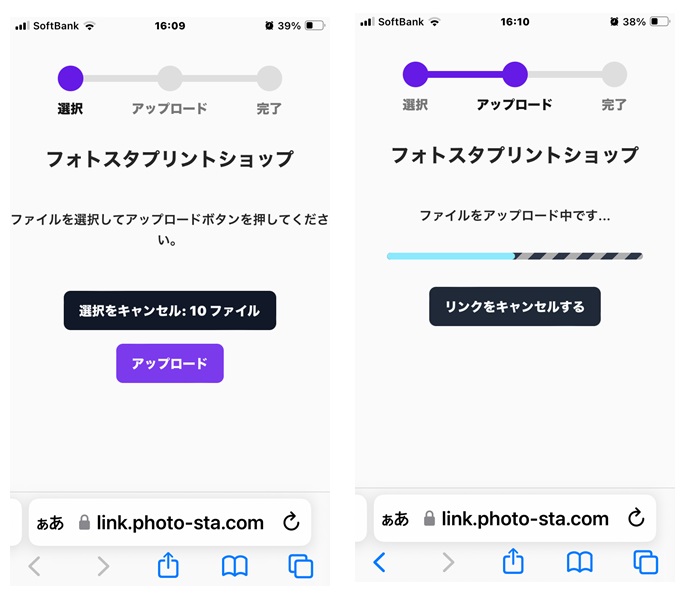 ダウンロードが完了すると画像選択が麺が表示されますので、転送が完了しましたら通常通りの手順で商品を注文してください。