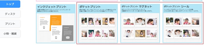 ポケットプリントには以下のような6種類のサイズとデザインがあります。